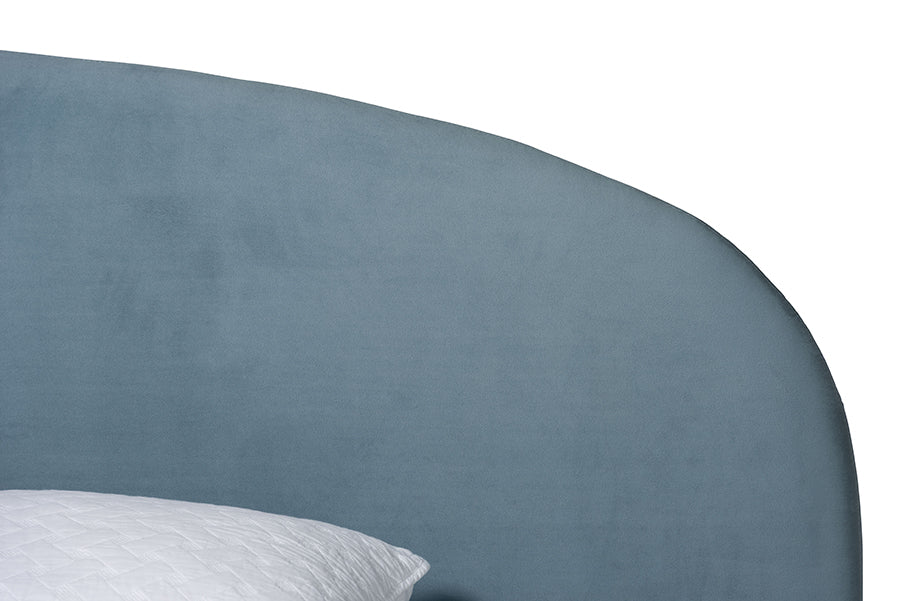 Baxton Studio Ekram Velvet Upholstered Platform Bed - Mid-Century Modern Bed Frame with Curved Headboard and Accent Footboard, Classic Luxe Bedroom Centerpiece, Queen