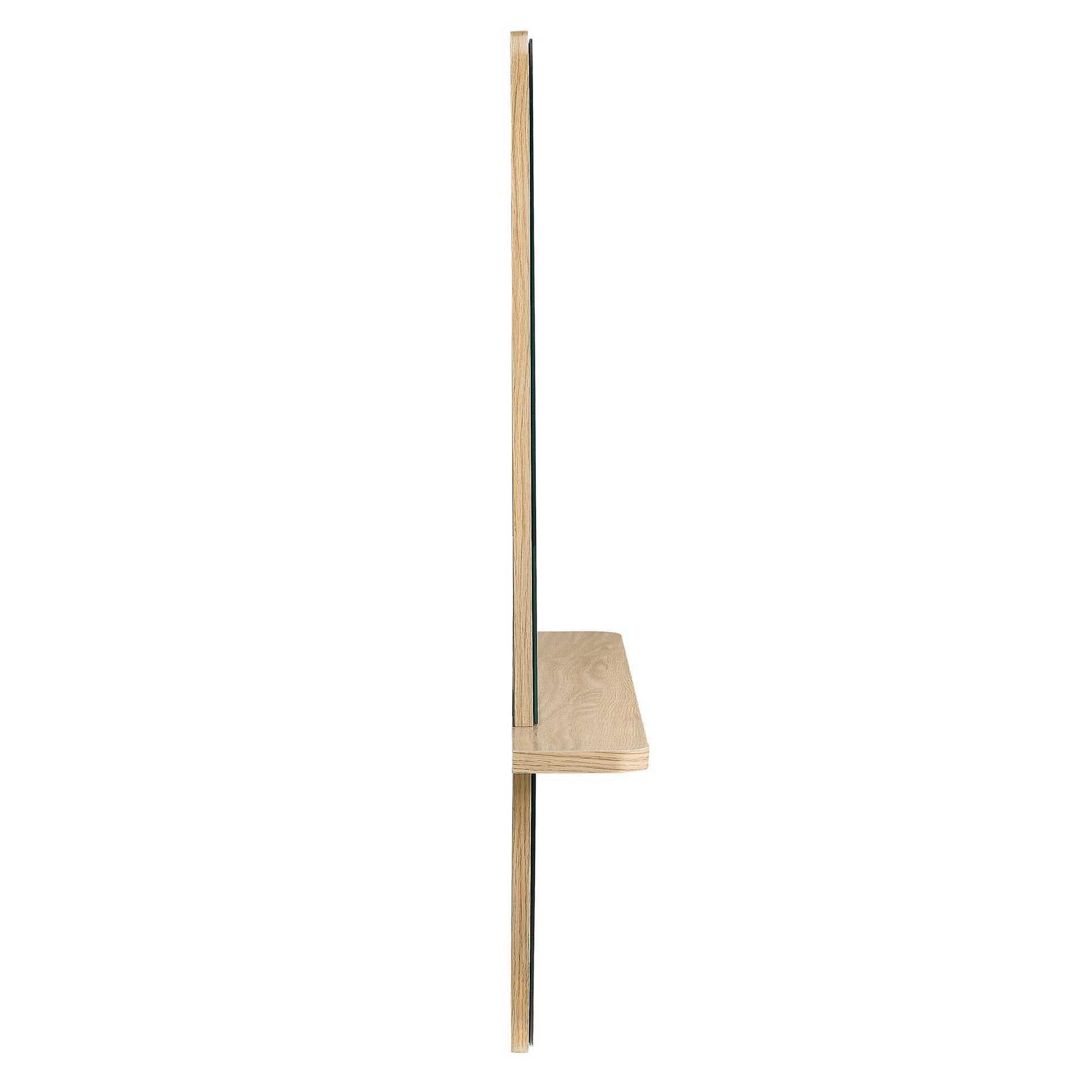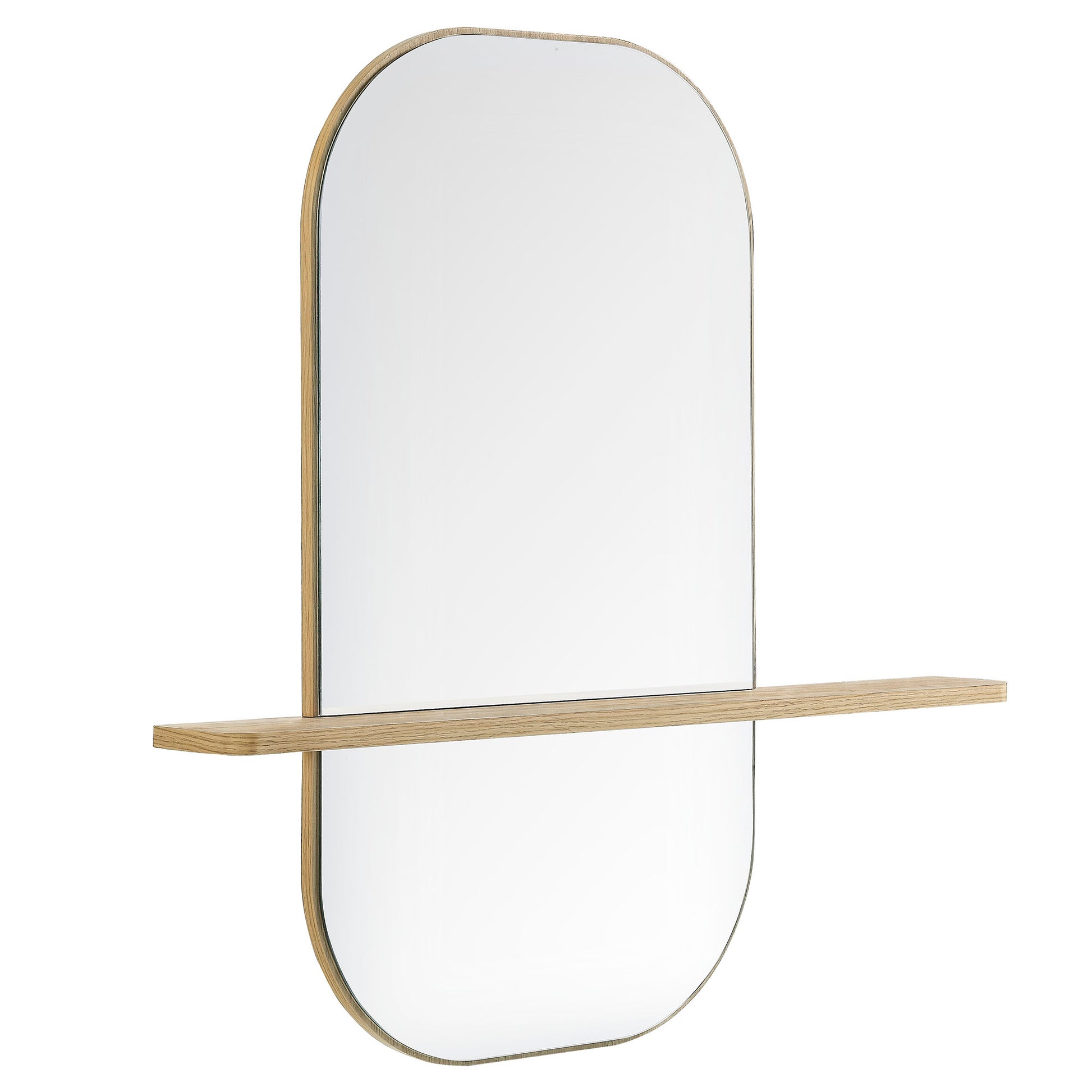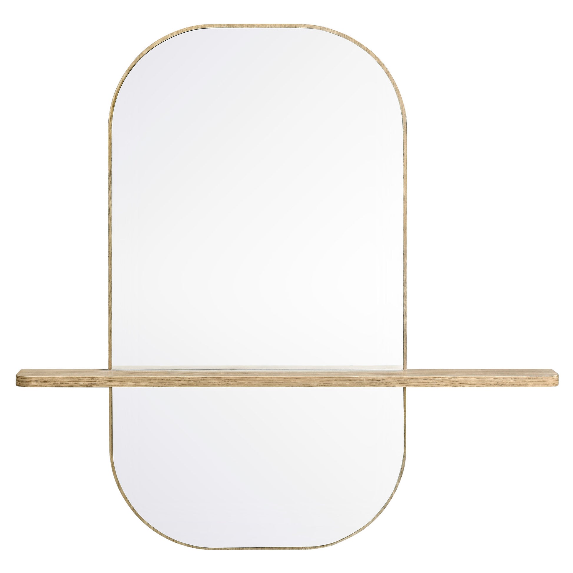 The Solstice Oval Mirror adds an air of sophistication to any space. A good blend of contemporary and traditional styles, this oversized rectangular mirror features rounded edges and a split design, making it the ideal decorative accent for an entryway or mudroom, living area, bedroom, bathroom, or vanity space. Crafted from particleboard with a wood grain laminate, this long wall mirror is designed to last for years and is sure to add a touch of elegance to any interior. An added shelf is great for storing small items such as keys, personal care items, and other small accessories. With only minimal assembly required, this wall mirror is sure to be a beautiful addition to any home.- Wall Mirror with Shelf